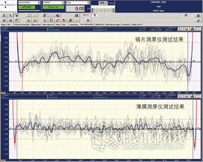 5.通过铸片剖面和薄膜剖面波动的观察比较,可以帮助分析出现波动可能存在的原因是在两台测厚仪之间,还是在铸片测厚仪之前。可以分析生产线的系统误差对薄膜厚度带来的影响量。