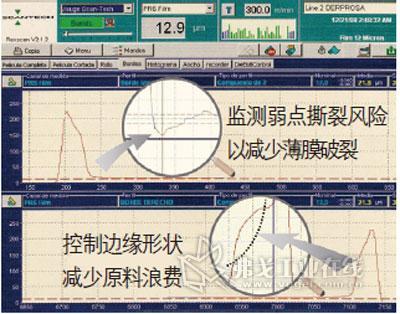 通过丰富测厚仪的显示软件,操作人员能够观察到薄膜厚度剖面的状况和变化。同时,根据这些状况及变化,可以帮助操作人员分析判断设备可能存在的问题,改善生产工艺,以及提高对设备的操作水平。它为操作人员带来了如下好处: